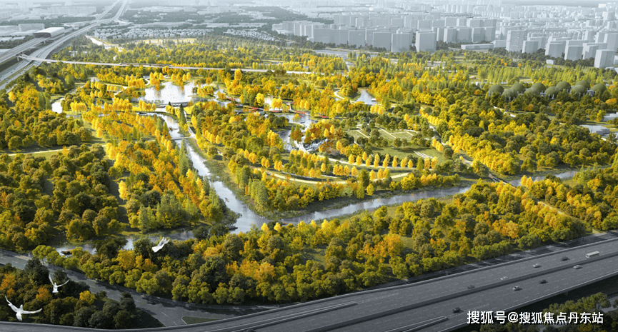 项主意东南侧为上海唯十的「楔形绿地公园」之一。公园举座面积约10.6平方公里,相当于7.6倍的世纪公园。(计议种植面积不低于420公顷,丛林笼罩率抵达70%,乔木笼罩率抵达75%,有约40条河道、4个湖泊,超110公顷水域面积。)而且本项目也位于板块内水系景观十字轴上,即南北向的朝阳河景观轴与东西向的长征河,整条滨水空间两岸为100%口袋公园。滚动的水系和森系的绿地,为社区供给一流的生态境遇。