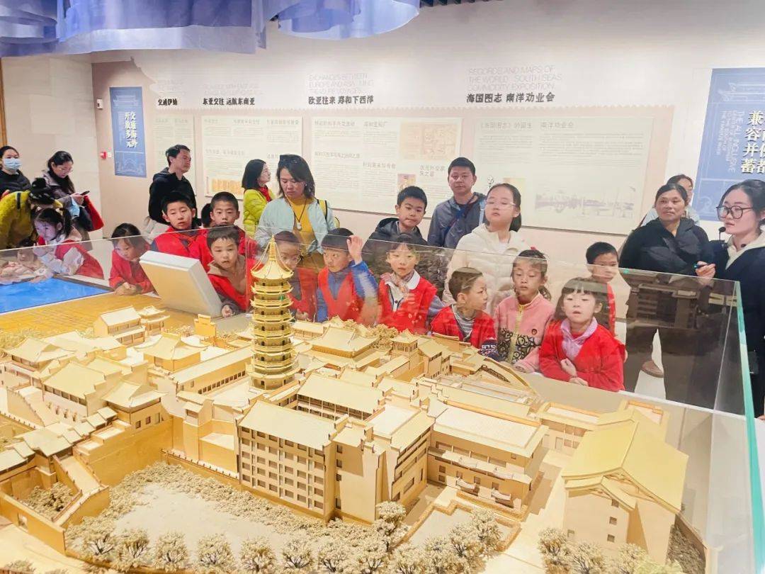 鸠合完毕,随着解说教授的程序,幼记者们来到二层的大厅,这里映现了南京的筑城史、六朝古都人文史籍、古典修筑、民国修筑及代表性史籍文明人文景观组成的史籍文明厅,超越了十朝都市几千年的史籍文脉。